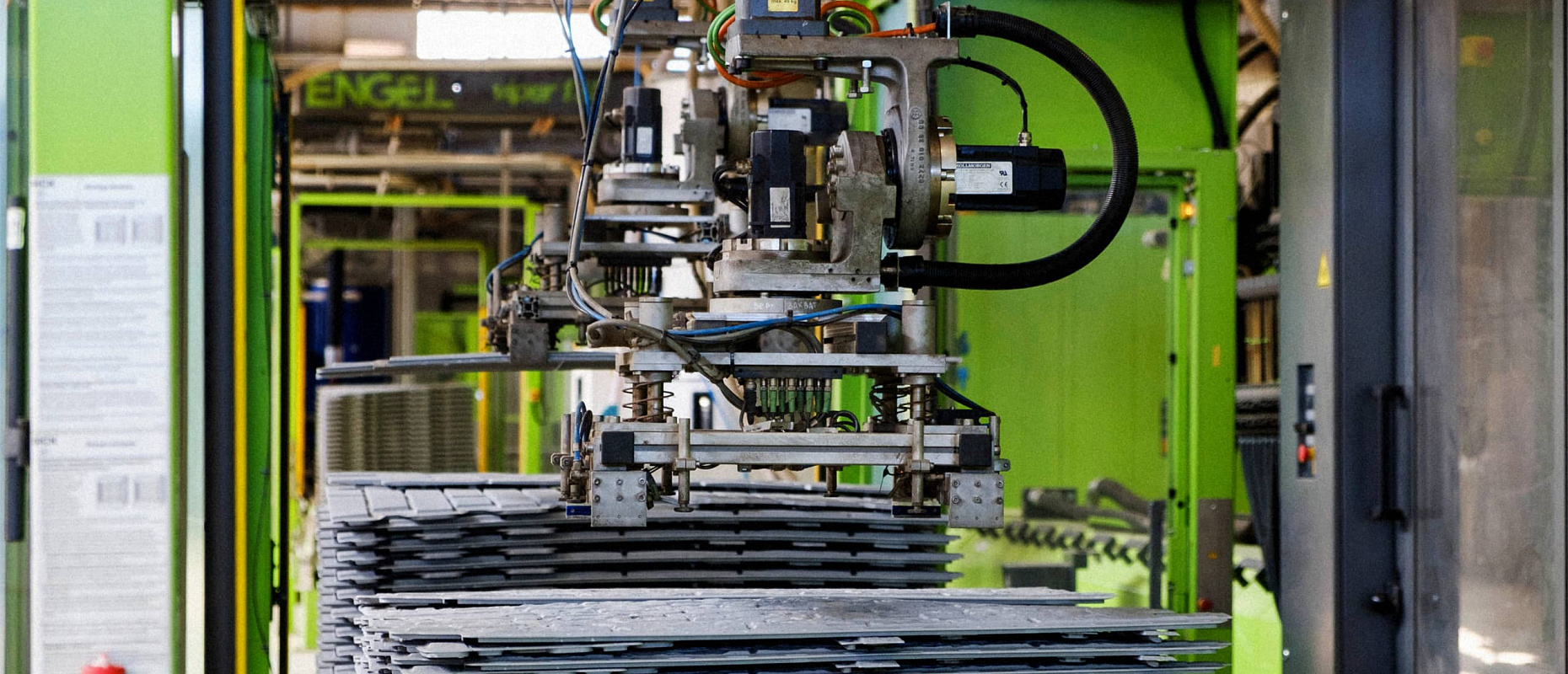 Завод по производству сайдинга, фасадных панелей и водостоков в Дмитрове (Московская обл.) оснащен оборудованием ведущих мировых производителей: Reimelt Henschel Misch-Systeme, Krauss-Maffei, Theysohn Extrusion, Engel Austria GmbH.