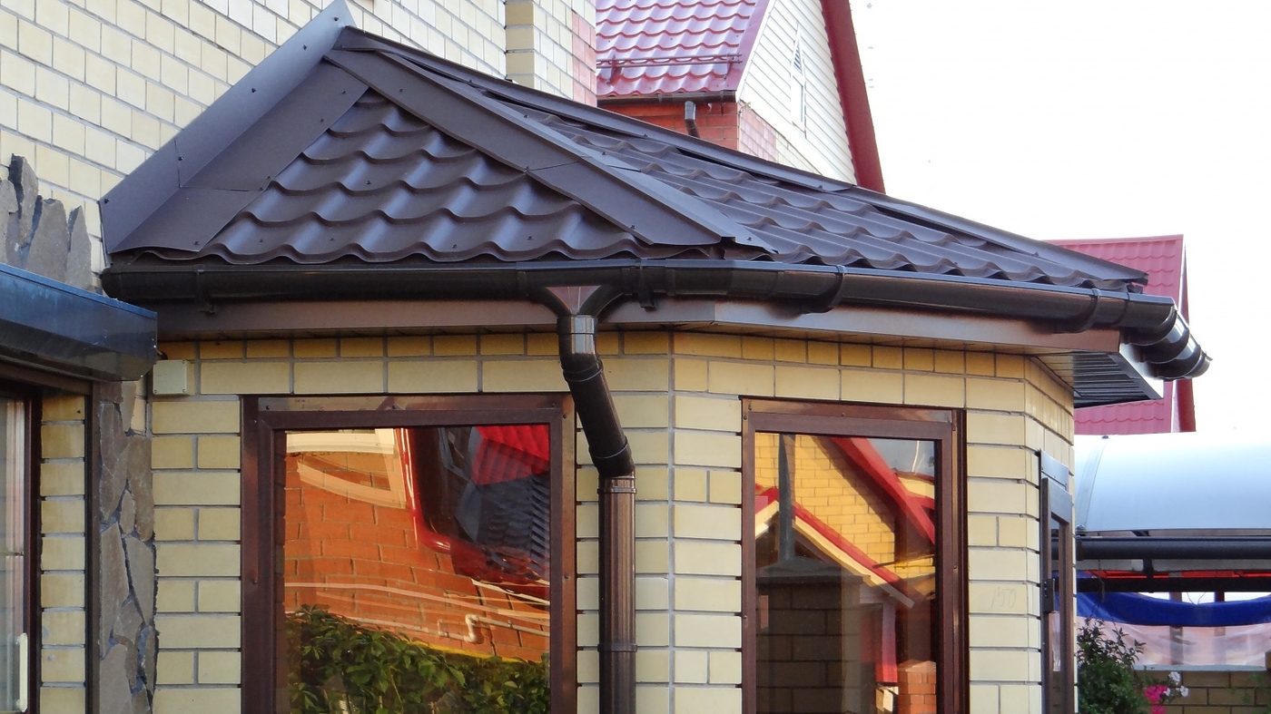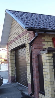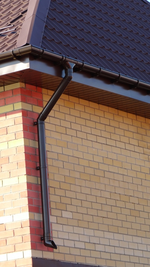 Крепление воронки к стене дома не требуется, но кронштейны для желоба по краям от воронки должны располагаться на расстоянии не более чем в 150 мм. Форма и размер воронки таковы, что желоб органично переходит в нее.