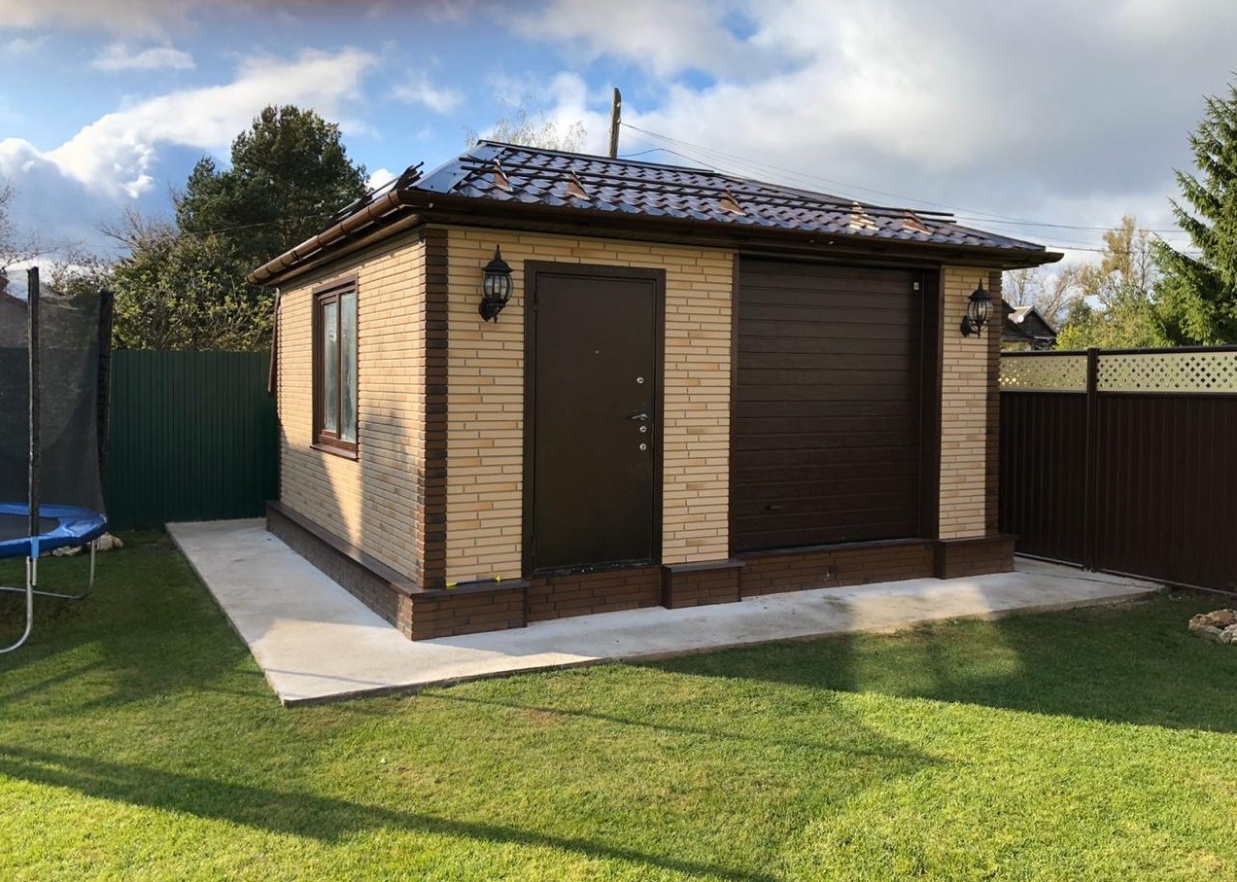 Сайдинг LUX Блок-хаус D4.7T Кедр, Фасадные панели Stein Темный орех, Водосток LUX Пломбир