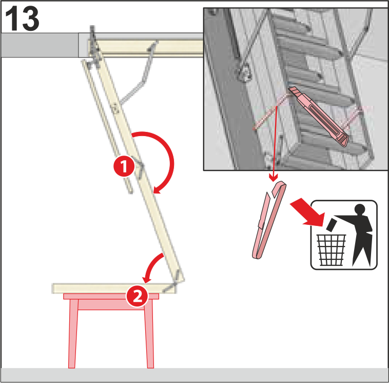 Снятие удерживающих креплений для раскрытия чердачной лестницы Дёке
