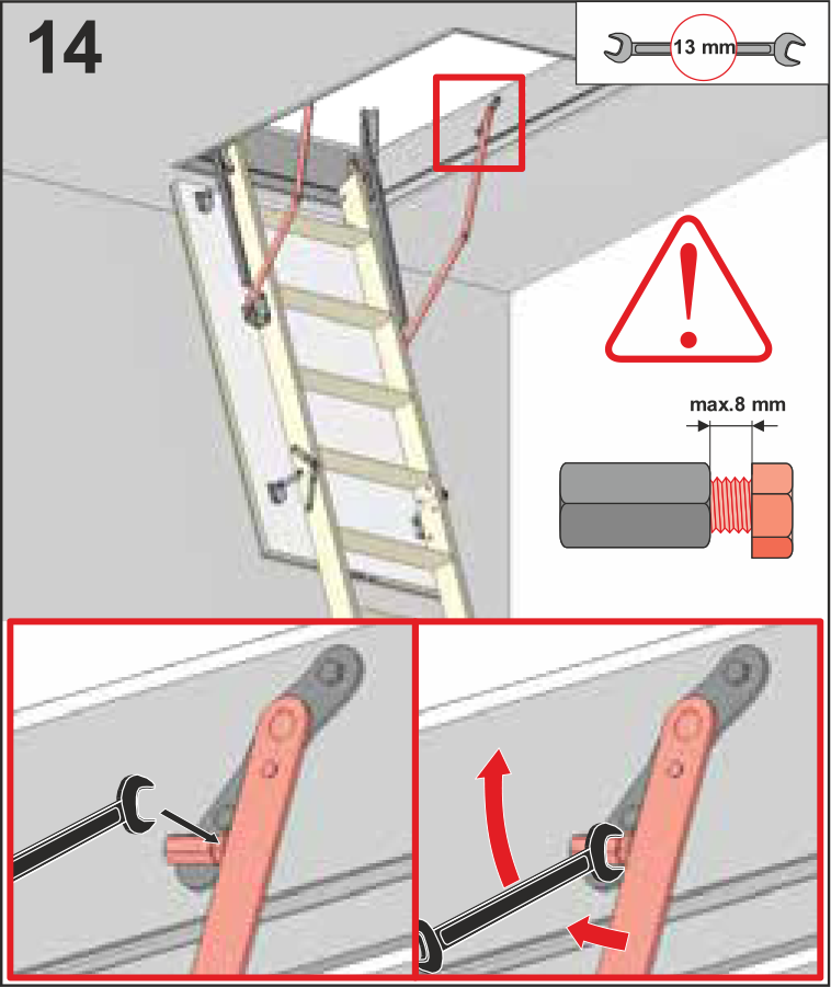 Регулирования длины чердачной лестницы Дёке