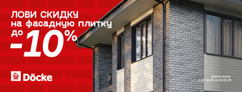 С 30.10.25 по 31.01.26 дарим скидку до -10% на всю фасадную плитку Döcke!