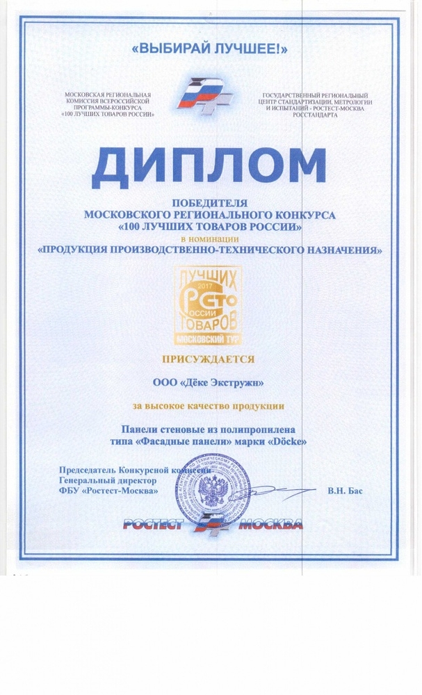 Диплом. Победитель регионального конкурса. Сайдинг - 100 лучших товаров России Диплом победителя регионального конкурса. Фасады - 100 лучших товаров России.